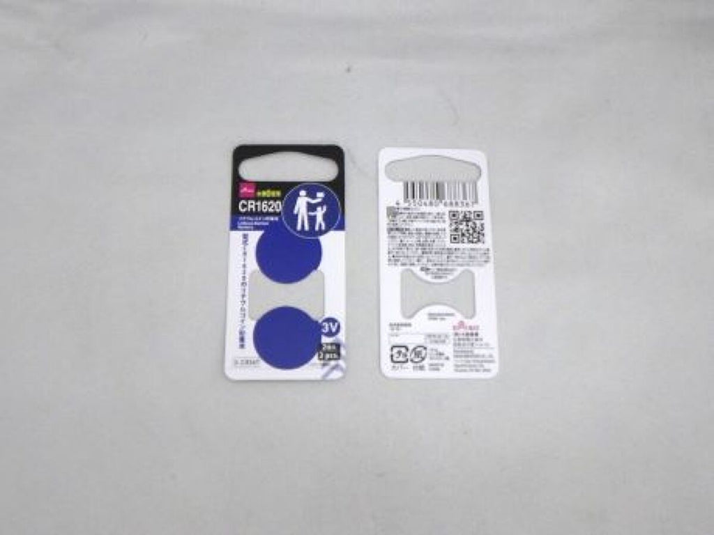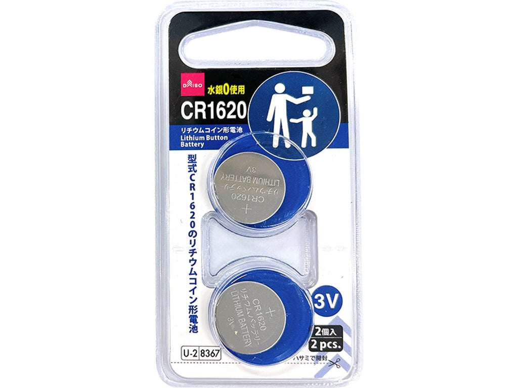 - 商品説明:型式CR1620のリチウムコイン形電池電子機器などに 2個入 水銀0使用●他の電池や金属製の物と一緒に保管・携帯しない。保管・廃棄の際はテープ等を巻いて絶縁する。●お子様やペットの手の届かない場所に保管してください。取り扱い注意●誤った電池の使い方や、保存環境によって発熱、破裂、液漏れ、機器の故障、ケガの原因となりますので、必ず下記のことを守ってください。●ショート、分解、加熱、充電、プラス、マイナス逆接続、新旧、異種電池混用、火に入れる、水や液体で濡らす、強い衝撃、変形させる等は厳禁。使い切った電池はすぐに機器から取り出してください。●開封時・開封後は切断面でケガをしないように注意する。●万一、電池からもれた液が目に入ったときはすぐに大量の水で洗い、医師に相談してください。皮膚や服に付いたときは水で洗ってください。●本来の用途以外に使用しないでください。●コイン電池は飲み込むと死に至る恐れがあるので、大変危険です。●万一飲み込んだ場合は、すぐに医師に相談してください。