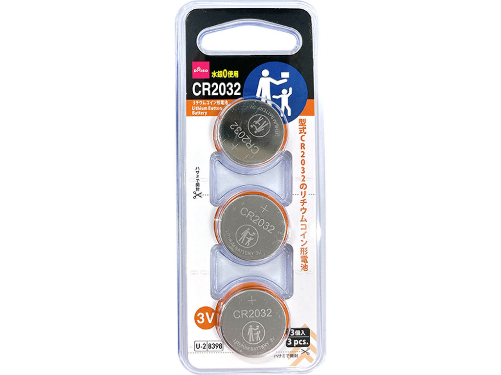 - 商品説明:型式CR2032のリチウムコイン形電池電子機器などに3個入 水銀0使用●他の電池や金属製の物と一緒に保管・携帯しない。保管・廃棄の際はテプ等を巻いて絶縁する。_●お子様やペットの手の届かない場所に保管してください。取り扱い注意_●誤った電池の使い方や、保存環境によって発熱、破裂、液漏れ、機器の故障、ケガの原因となりますので、必ず下記のことを守ってください。_●ショート、分解、加熱、充電、プラス、マイナス逆接続、新旧、異種電池混用、火に入れる、水や液体で濡らす、強い衝撃、変形させる等は厳禁。_●使い切った電池はすぐに機器から取り出してください。_●開封時・開封後は切断面でケガをしないように注意する。_●万一、電池からもれた液が目に入ったときはすぐに大量の水で洗い、医師に相談してください。_皮膚や服に付いたときは水で洗ってください。_●本来の用途以外に使用しないでください。●コイン電池は飲み込むと死に至る恐れがあるので、大変危険です。●万一飲み込んだ場合は、すぐに医師に相談してください。
