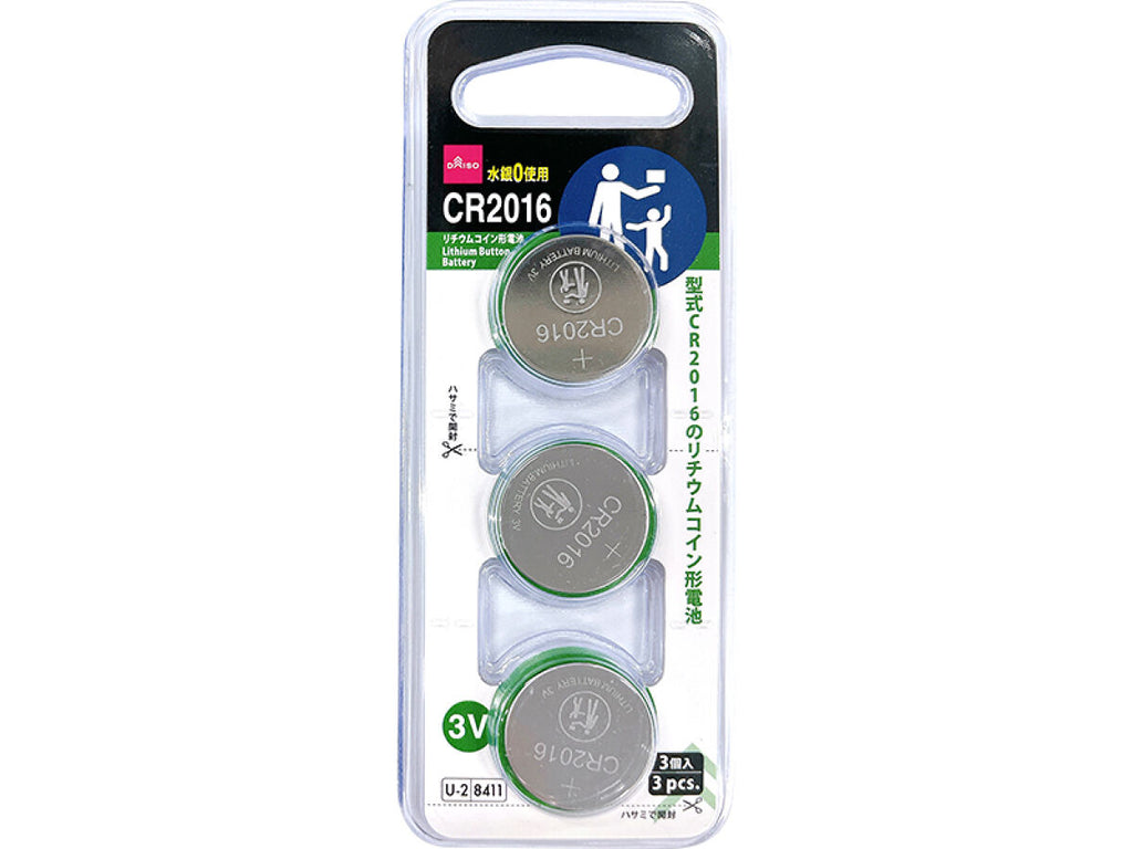 - 商品説明:型式CR2016のリチウムコイン形電池電子機器などに 3個入 水銀0使用●他の電池や金属製の物と一緒に保管・携帯しない。保管・廃棄の際はテープ等を巻いて絶縁する。●お子様やペットの手の届かない場所に保管してください。取り扱い注意●誤った電池の使い方や、保存環境によって発熱、破裂、液漏れ、機器の故障、ケガの原因となりますので、必ず下記のことを守ってください。●ショート、分解、加熱、充電、プラス、マイナス逆接続、新旧、異種電池混用、火に入れる、水や液体で濡らす、強い衝撃、変形させる等は厳禁。●使い切った電池はすぐに機器から取り出してください。●開封時・開封後は切断面でケガをしないように注意する。●万一、電池からもれた液が目に入ったときはすぐに大量の水で洗い、医師に相談してください。皮膚や服に付いたときは水で洗ってください。●本来の用途以外に使用しないでください。●コイン電池は飲み込むと死に至る恐れがあるので、大変危険です。●万一飲み込んだ場合は、すぐに医師に相談してください。