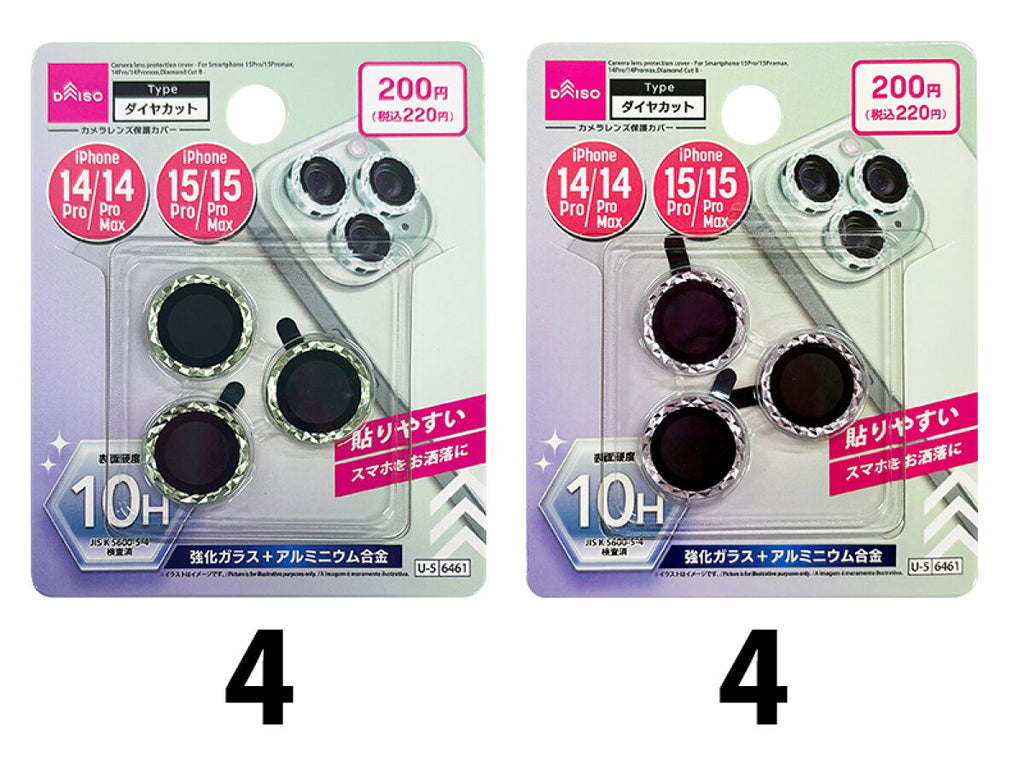 カメラレンズ保護カバー(アイフォーン用、15Pro/15Promax&14Pro/14Promax、ダイヤカットB)