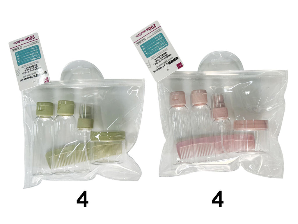 - 商品説明:化粧品やシャンプーなど、ボトルとケースの詰め替え用セットです。 セット内容 クリームケース 約75g 1個入り スプレーボトル 約35mL 1個入り ボトル 約65mL 2個入り ヘアブラシ 1個入り●飛行機の中等の高所や気圧の変化が大きい場所では使用しないでください。●使用前に傷やヒビ割れ等がある場合は、使用しないでください。●使用前に液漏れがないか確認してください。●長期間中身を入れたままにしないでください。●直射日光・高温多湿の場所を避けて、使用・保管してください。●乳幼児の手の届かない場所で使用・保管してください。●変形・破損した場合、直ちに使用を中止してください。●火や熱源のそばに置かないでください。●長期間他の製品と密着させないでください。可塑剤の影響で変質、色移りの恐れがあります。