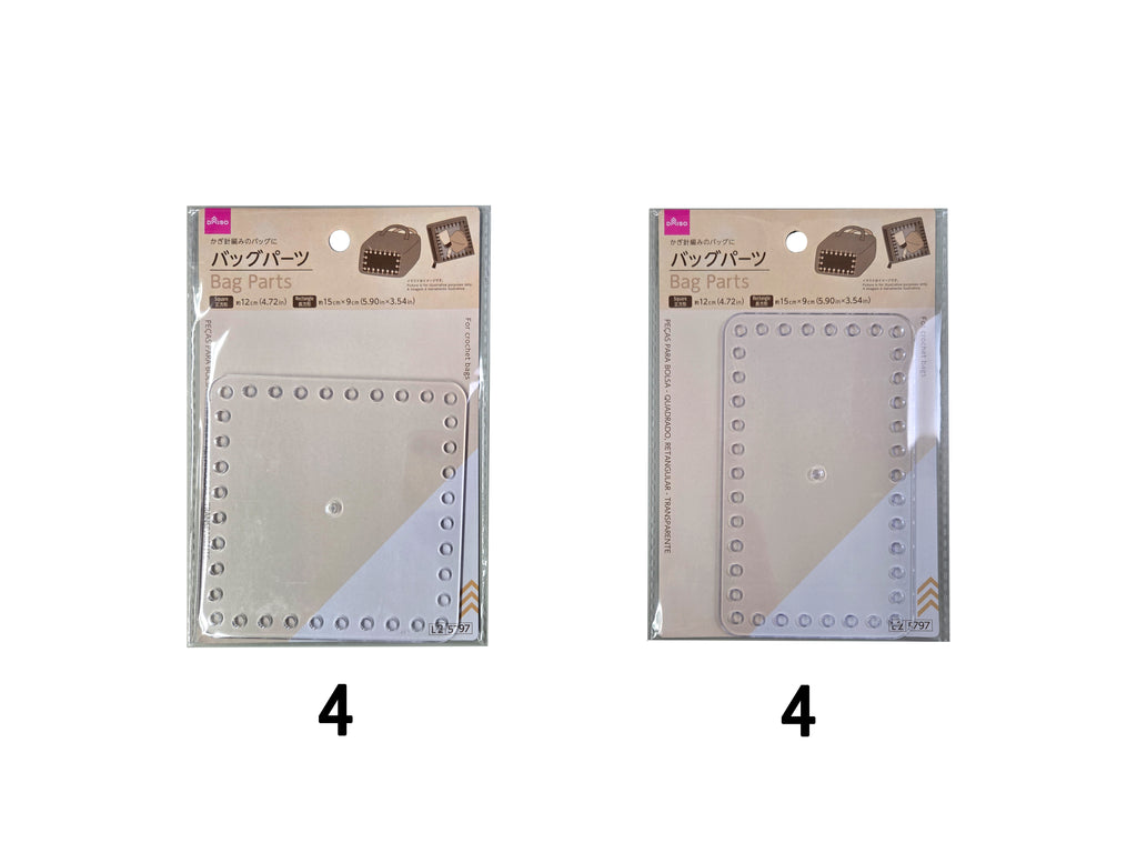 正方形 約12cm 長方形 約15cm×9cm かぎ針編みのバッグに●イラストはイメージです。本品の穴に沿って、かぎ針で糸を編み込んでください。●洗濯しないでください。●乳幼児の手の届かない場所で使用・保管してください。●変形・破損した場合、直ちに使用を中止してください。●直射日光・高温の場所を避けて、使用・保管してください。●火や熱源のそばに置かないでください。●本来の用途以外に使用しないでください。