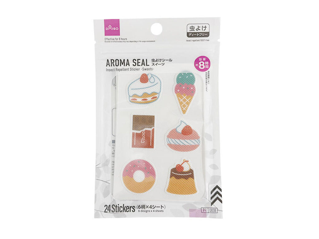 - 商品説明:(6柄×4シート) ディートフリー 効果約8時間 使用環境により持続時間は異なります。 服の袖口、帽子、靴などにシールを貼ります。 ●虫の嫌がる香り成分を配合しています。●ディート(忌避剤)は使用していません。※すべての虫に効果があるわけではありません。 適用害虫:ユスリカー ●チャックを閉めて保管してください。●直射日光・高温の場所を避けて、保管してください。●お子様の手の届かない場所に保管してください。●長時間貼り付けたままにしたり、貼り付けたまま洗濯したりしないでください。●革製品や合成革に使用しないでください。●本品を使用する際は、保護者監督のもと使用してください。●肌に貼らないでください。●強風時など使用環境により、効果が出ない場合があります。●火や熱源のそばに置かないでください。●本来の用途以外に使用しないでください。