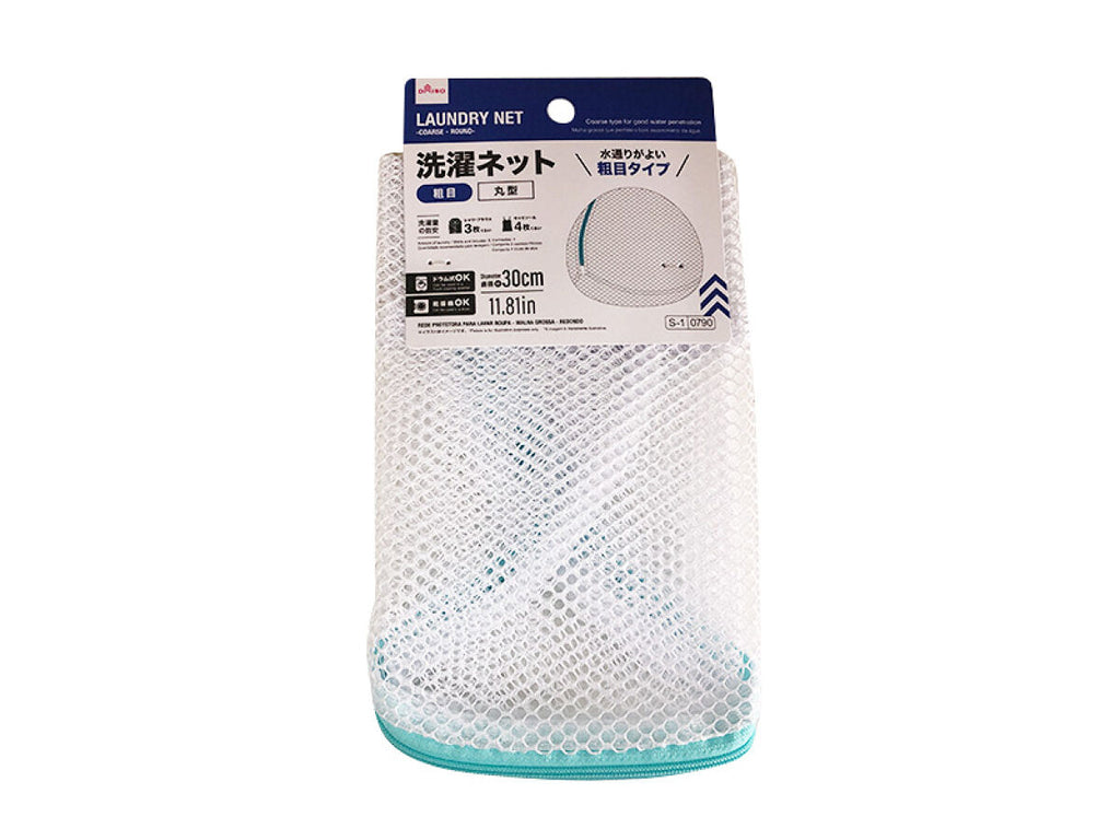 - 商品説明:●水通りがよい粗目タイプ●洗濯量の目安●シャツ・ブラウス3枚くらい●キャミソール4枚くらい●ドラム式OK●乾燥機OK●直径約30cm●イラストはイメージです。●他の衣類を傷めにくいファスナーカバー付。●衣類にやさしいバイアステープ仕上げ。●ねじれや、からみつきによる生地の傷みを防ぎます。●色ものは、単独で洗濯してください。●ネットの容量の2/3を目安に衣類を入れてください。●洗濯の際は必ずファスナーをファスナーカバーの奥まで閉めてください。●使用後は水気をよく切り、乾燥させてください。●衣類に表示されている取り扱い絵表示に従ってください。●洗濯機の取扱説明書を確認の上、使用してください。●洗濯ネットに洗濯物を入れたまま乾燥機に入れると、乾きムラやシワの原因になることがあります。●尖ったものや鋭利なものを入れないでください。●重いものを入れたり、詰めすぎたりしないでください。●変形・破損した場合、直ちに使用を中止してください。●火や熱源のそばに置かないでください。●本来の用途以外に使用しないでください。●本品使用目的以外の使用に起因するなど、本品の欠陥に基づかない損害については当社では責任を負い