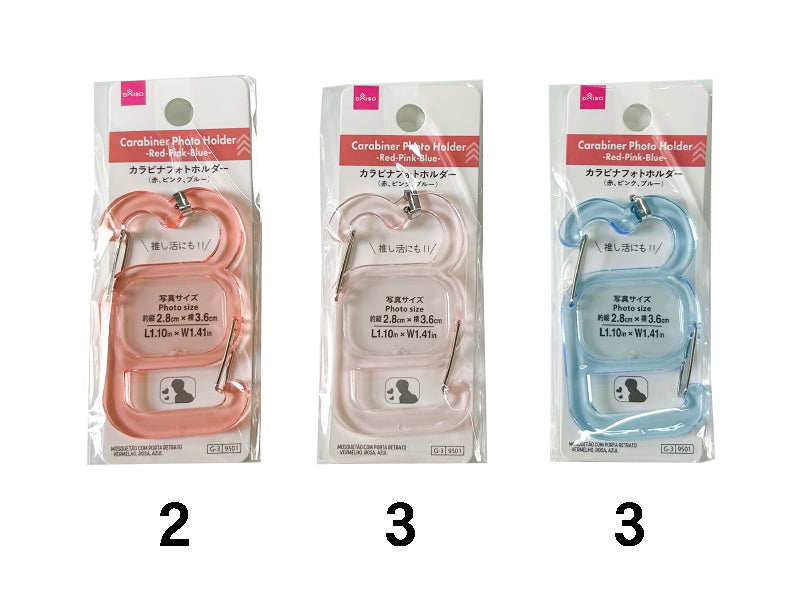カラビナフォトホルダー(赤、ピンク、ブルー)