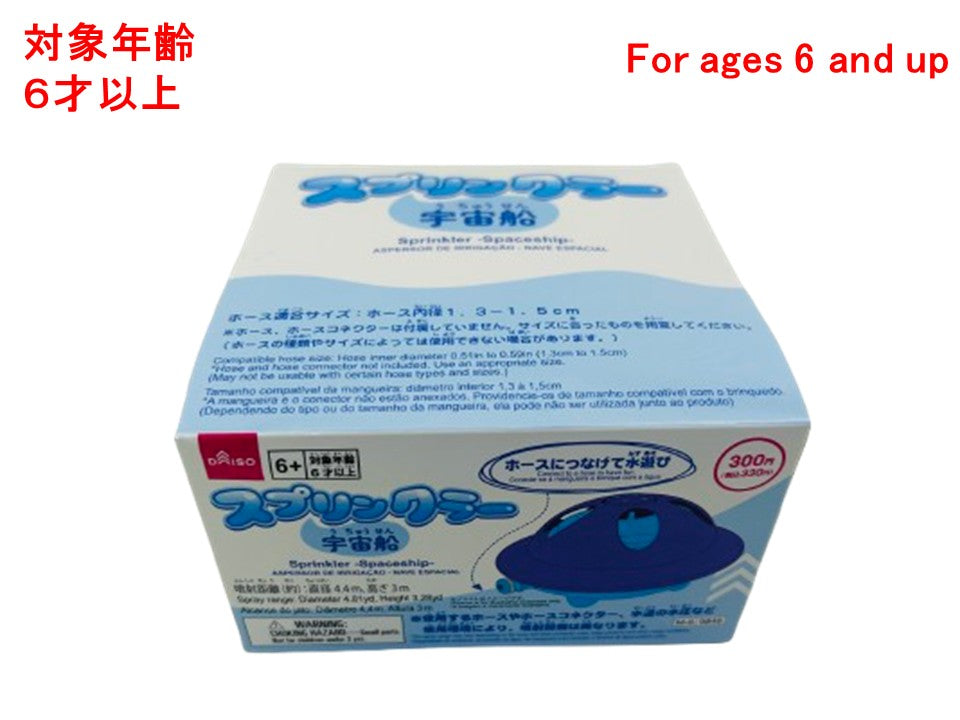 楽しく遊ぼう!ホースにつなげて水遊び ※使用するホースやホースコネクター、水道の水圧など使用環境により、噴射距離は異なります。噴射距離(約):直径4.4m、高さ3m ホース適合サイズ:ホース内径1.3ー1.5cm ※ホース、ホースコネクターは付属していません。サイズに合ったものを用意してください。(ホースの種類やサイズによっては使用できない場合があります。)対象年齢6才以上 ①本品に市販のホースコネクター(別売)を接続したホース(別売)を取り付けます。②水道から水を出すと上部が回転しながら水が噴射されます。※ホースがしっかり取り付けられていることを確認し、水漏れなどがないことを確認してから使用してください。※広範囲に水が噴射されますので、水がかかっても問題のない場所で使用してください。●使用後は水気や汚れを拭き取り、乾燥させてから保管してください。●直射日光・高温多湿の場所を避けて、保管してください。●乳幼児の手の届かない場所に保管してください。●人の顔や動物に向けて使用しないでください。 ●水以外のものを通さないでください。 ●お湯など熱いものを通さないでください。●保護者の方へ、必ずお