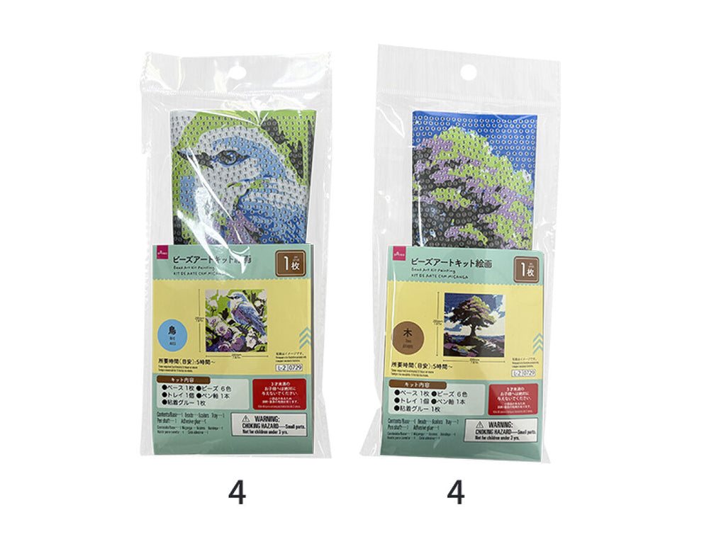 - 単品サイズ:ベース:(鳥)20×20×0.02cm、(木)20×20×0.02cm、トレイ:8.9×4.7×0.9cm、ペン:0.7×12×0.7cm、粘着グルー:2×2×0.2cm、ビーズ(袋込み):37×6×0.5cm