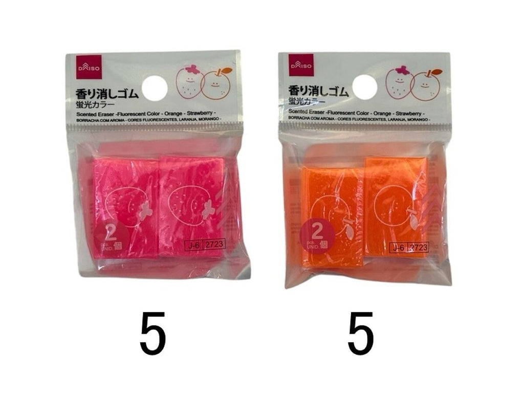 香り消しゴム(蛍光カラー、オレンジ、イチゴ、2個)