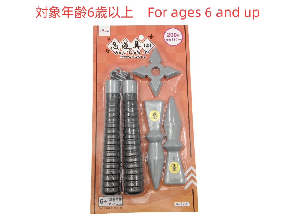 - 単品サイズ:ヌンチャク:2.9×2.9×53cm、苦無:3.3×1.6×14.5cm、手裏剣:8.7×8.7×1cm