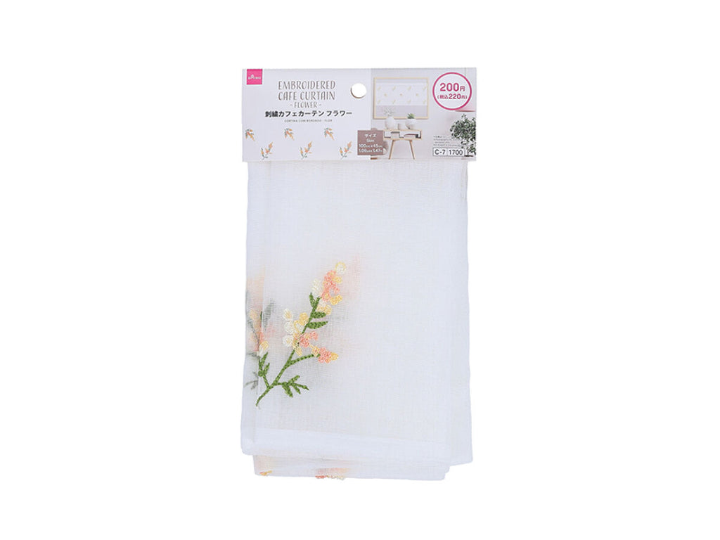 刺繍カフェカーテン(フラワー)100cm×45cm