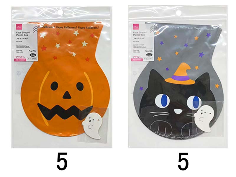 フェイスバッグ(黒猫、かぼちゃ、5枚)19cm×15cm