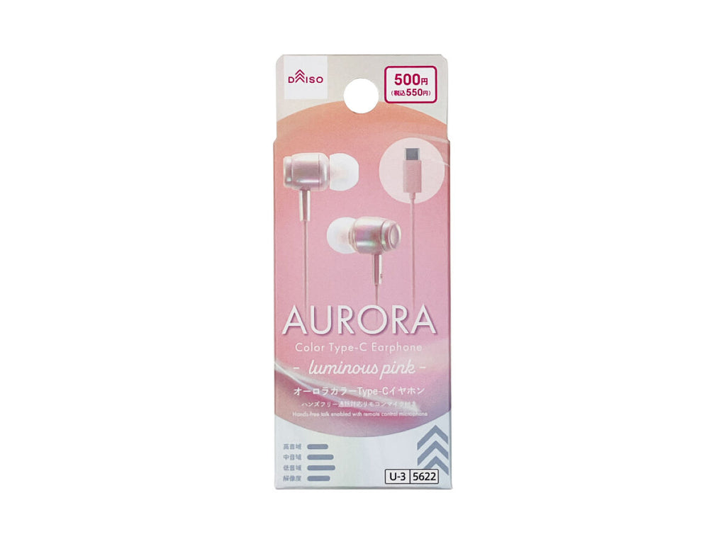 オーロラカラーType―Cイヤホン(マイク付、ルミナスピンク)