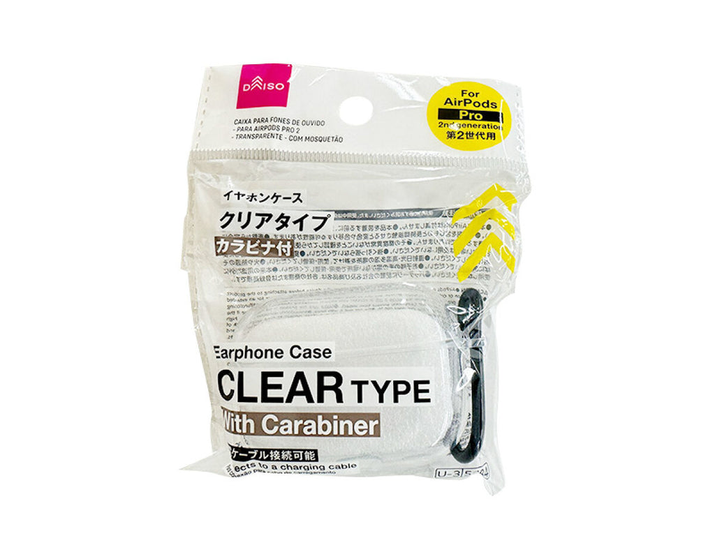 イヤホンケース(エアーポッズPro2用、クリア、カラビナ付)