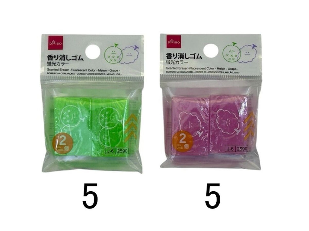 香り消しゴム(蛍光カラー、メロン、ぶどう、2個)