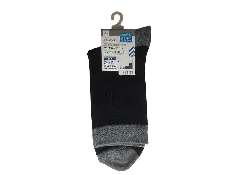 アンクルソックス(吸水速乾、抗菌防臭、バイカラー、黒・グレー)