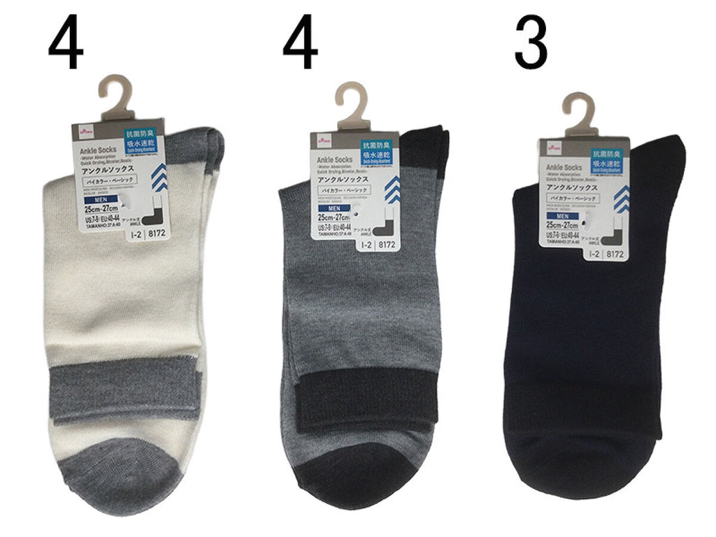 アンクルソックス(吸水速乾、抗菌防臭、バイカラー、ベーシック)