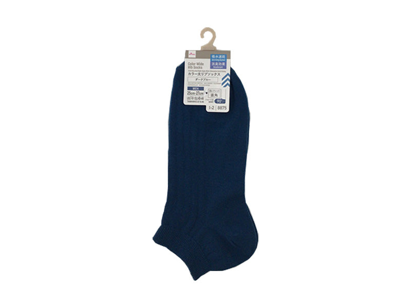 カラー太リブソックス(ダークブルー、かかと直角、吸水速乾、消臭)