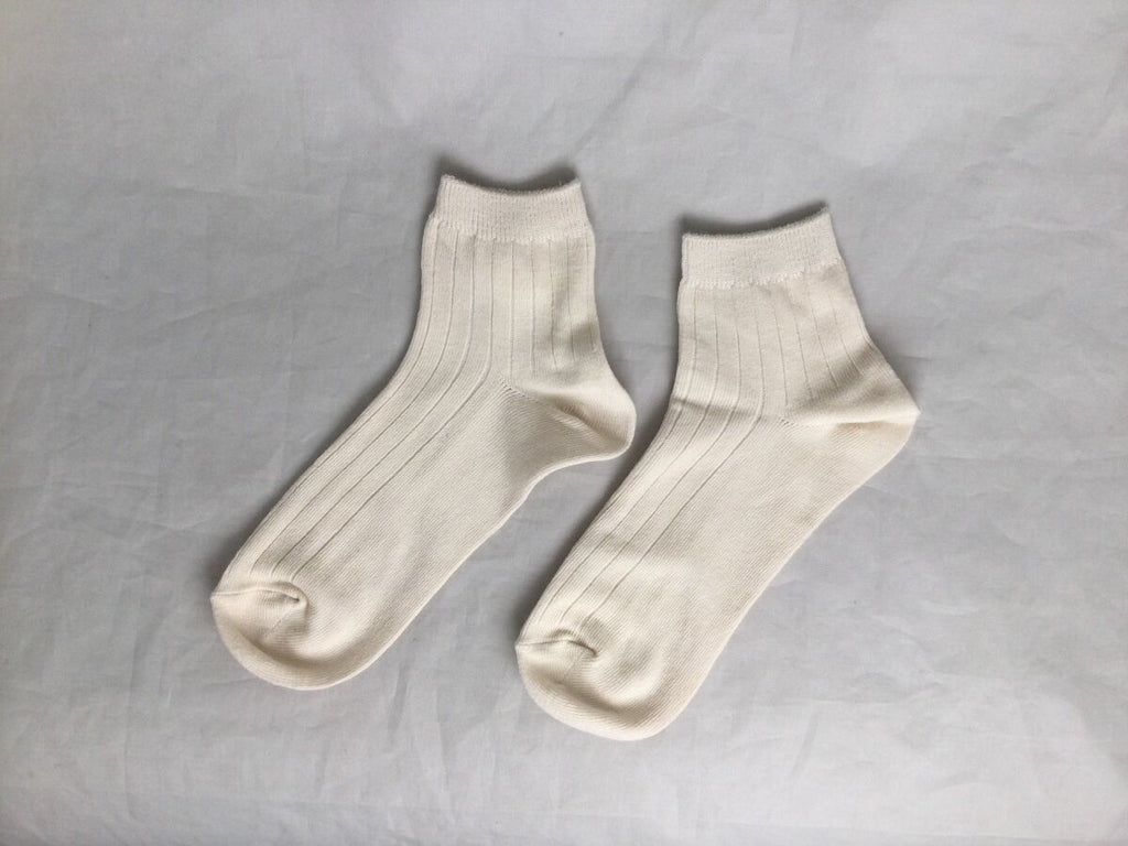 カラー太リブソックス(アイボリー、かかと直角、吸水速乾、消臭)