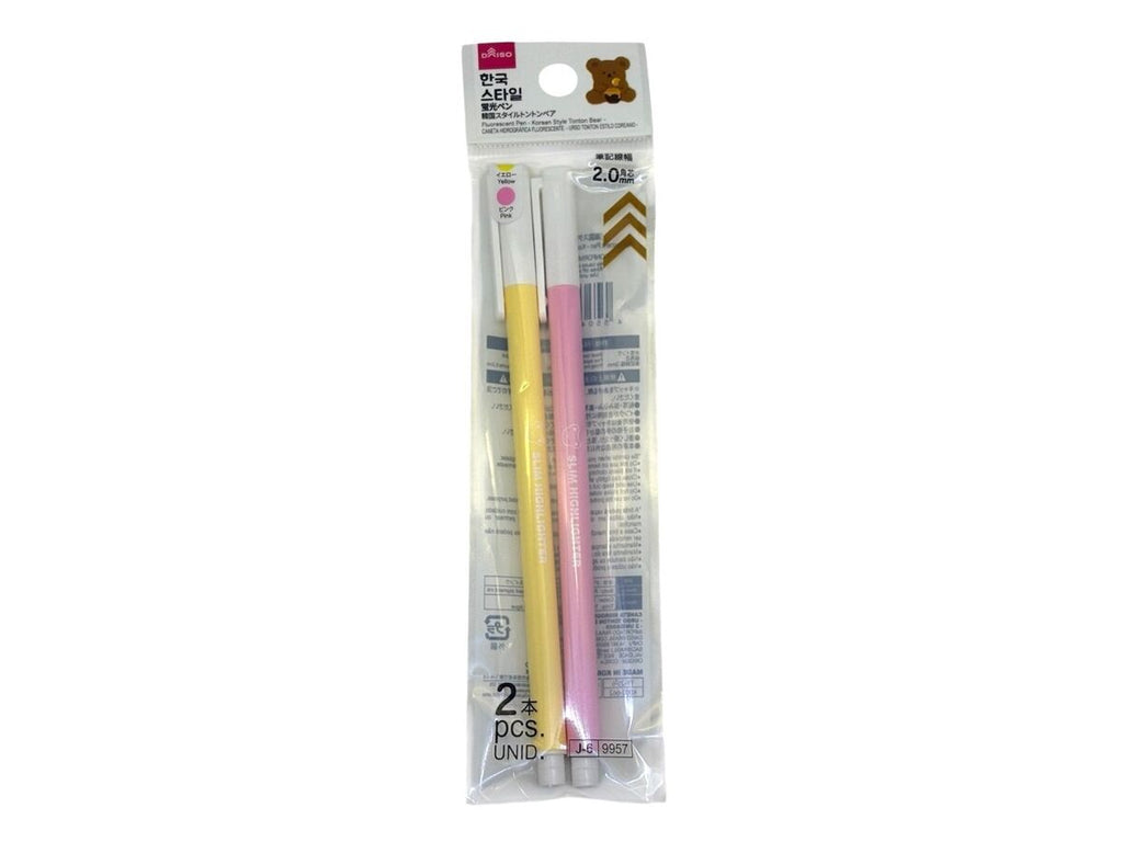 蛍光ペン(韓国スタイルトントンベア、2本)細角芯2mm