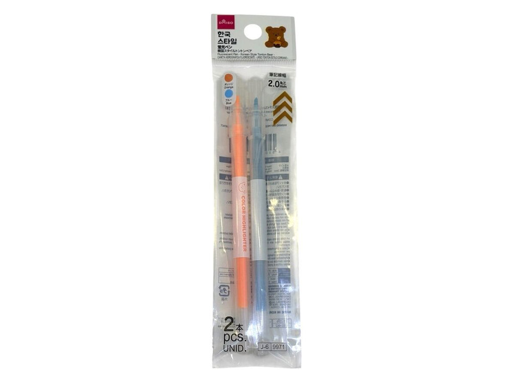 蛍光ペン(韓国スタイルトントンベア、クリアボディ―、2本)細角芯2mm