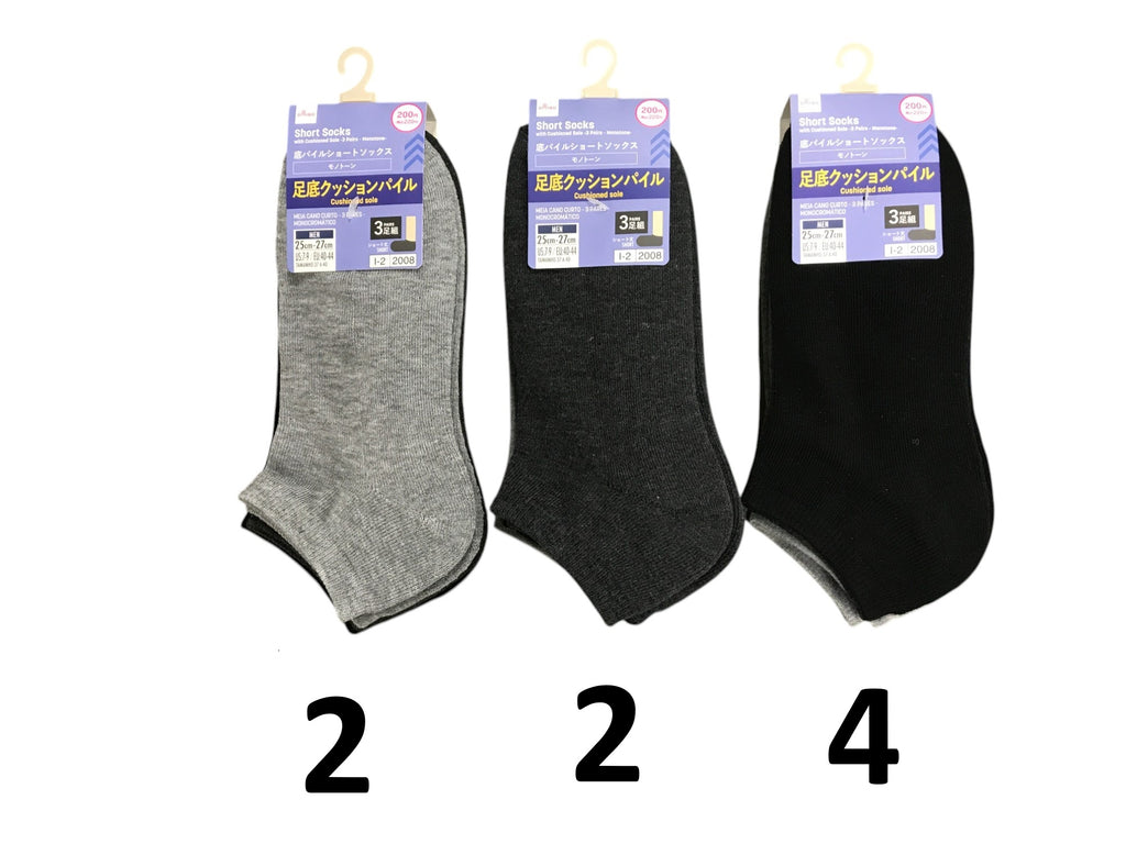 底パイルショートソックス(3足組、モノトーン)25cm―27cm