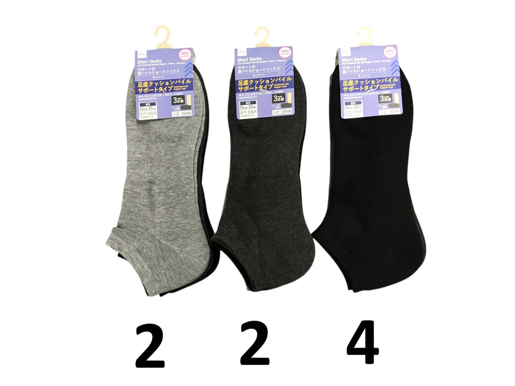 サポート付底パイルショートソックス(3足組、モノトーン)25cm―27cm