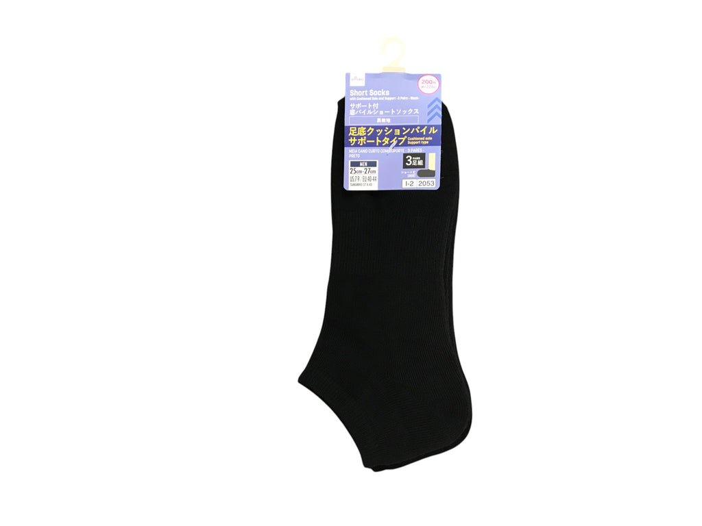 サポート付底パイルショートソックス(3足組、黒)25cm―27cm