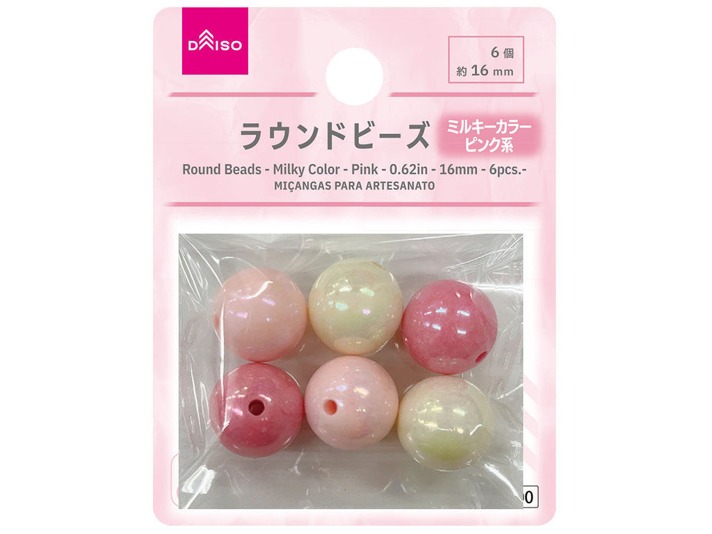 ラウンドビーズ(ミルキーカラー、ピンク系、6個)16mm