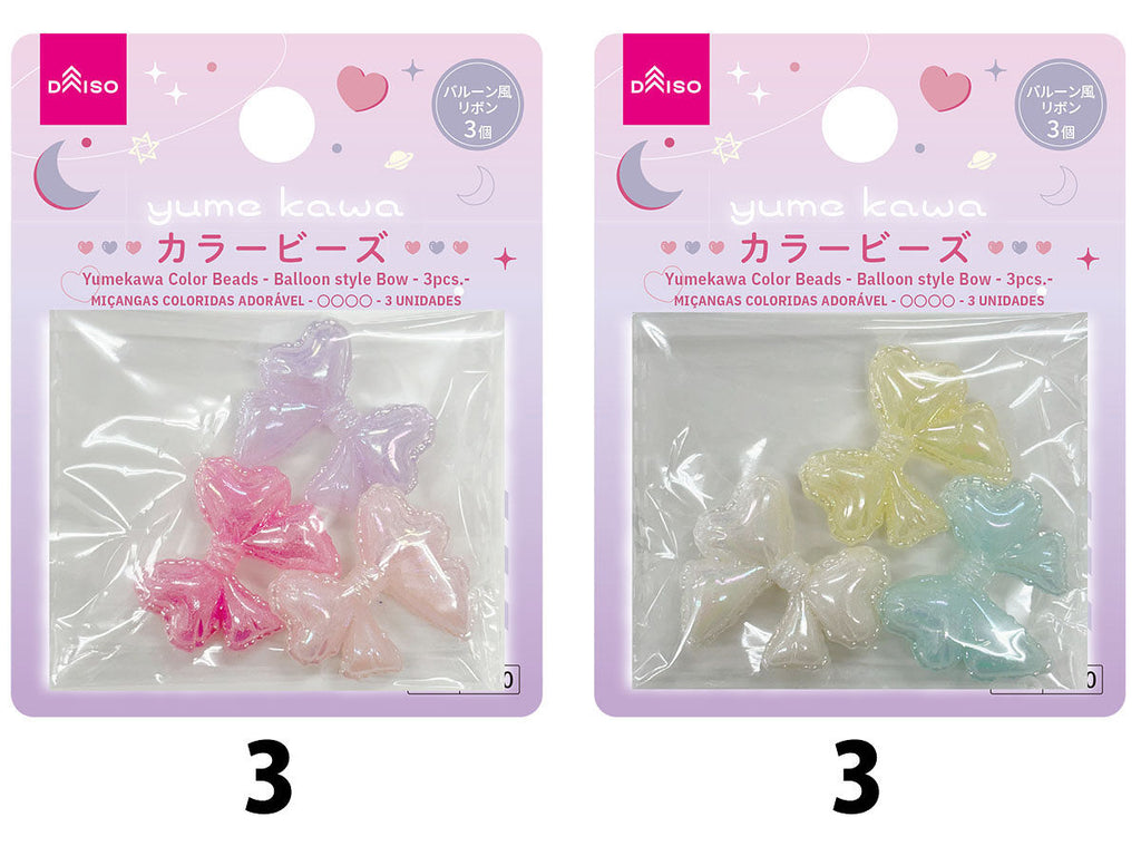 ゆめかわカラービーズ(バルーン風リボン、3個)