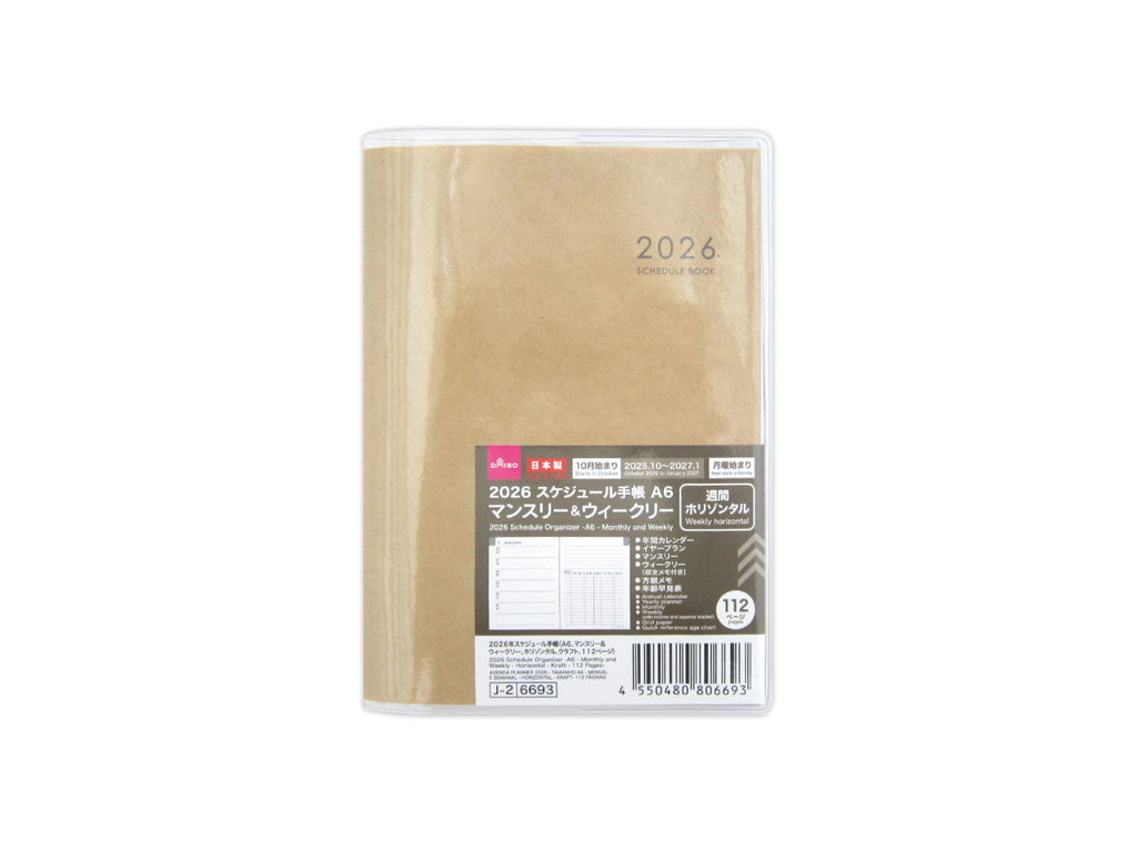 2026年スケジュール手帳(A6、マンスリー&ウィークリー、ホリゾンタル、クラフト、112ページ)なし