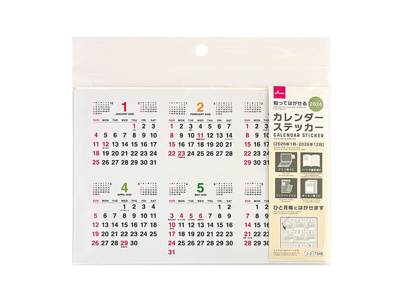 貼ってはがせるデスク周りにノートや家計簿にクリアファイルにキッチン周りにひと月毎にはがせます2026年1月-2026年12月カレンダーステッカー●イラストはイメージです。法改正により祝日や休日が変更になる場合があります。(2024年11月現在)●長期間使用した後に剥がすと、シール跡が残る場合があります。●肌に貼らないでください。●一度貼るとはがす時、きれいにはがれなかったり、糊が残る場合があります。●乳幼児の手の届かない場所で使用・保管してください。●直射日光・高温多湿の場所を避けて、使用・保管してください。●火や熱源のそばに置かないでください。●本来の用途以外に使用しないでください。
