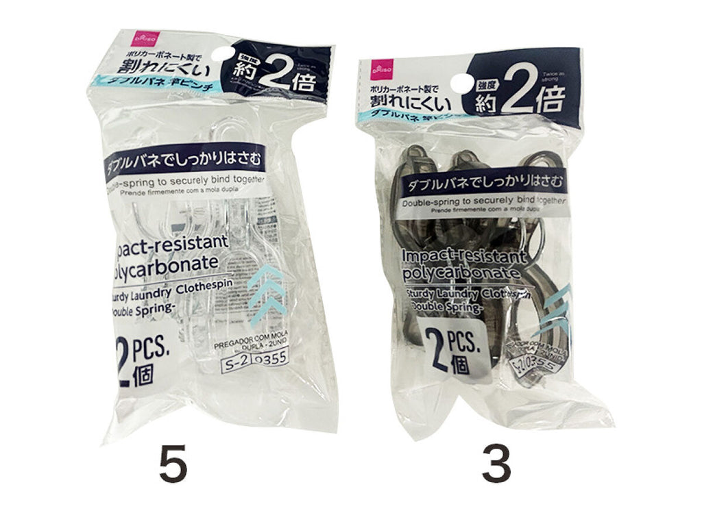 ダブルバネでしっかりはさむー2つの洗濯物を一度にはさめる二股ピンチ。
