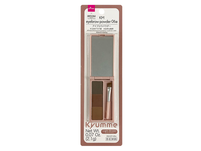 #立体グラデ眉_#自然な陰影_ライトブラウン_Net_Wt._0.07_Oz._2.1g_KM-EP-06aアイブロウパウダー絶妙な濃淡カラーの組み合わせで、思い通りの仕上がりが実現。_立体的で自然な眉メイクが叶います。①ブラシにパウダーを適量とり、手の甲などで量を調節しながらご使用ください。_②眉の中央から眉尻に向かってグラデーションを作ります。_眉頭はふんわり淡く仕上げると自然な印象になります。●肌に異常が生じていないかよく注意して使う。肌に合わない時や、使用中、赤味、はれ、かゆみ、刺激、色抜け(白斑等)や黒ずみ等の異常が出た時、また、日光があたって同じような異常が出た時は、使用を中止して皮膚科医へ相談する。使い続けると症状が悪化する場合がある。●傷やはれもの、しっしん等、異常のある部位には使わない。●目に入らないよう注意。●落下等の衝撃に注意。●使用後はしっかり蓋をしめる。●乳幼児の手の届かないところに保管。●極端に高温又は低温の場所、直射日光のあたる場所には保管しない。