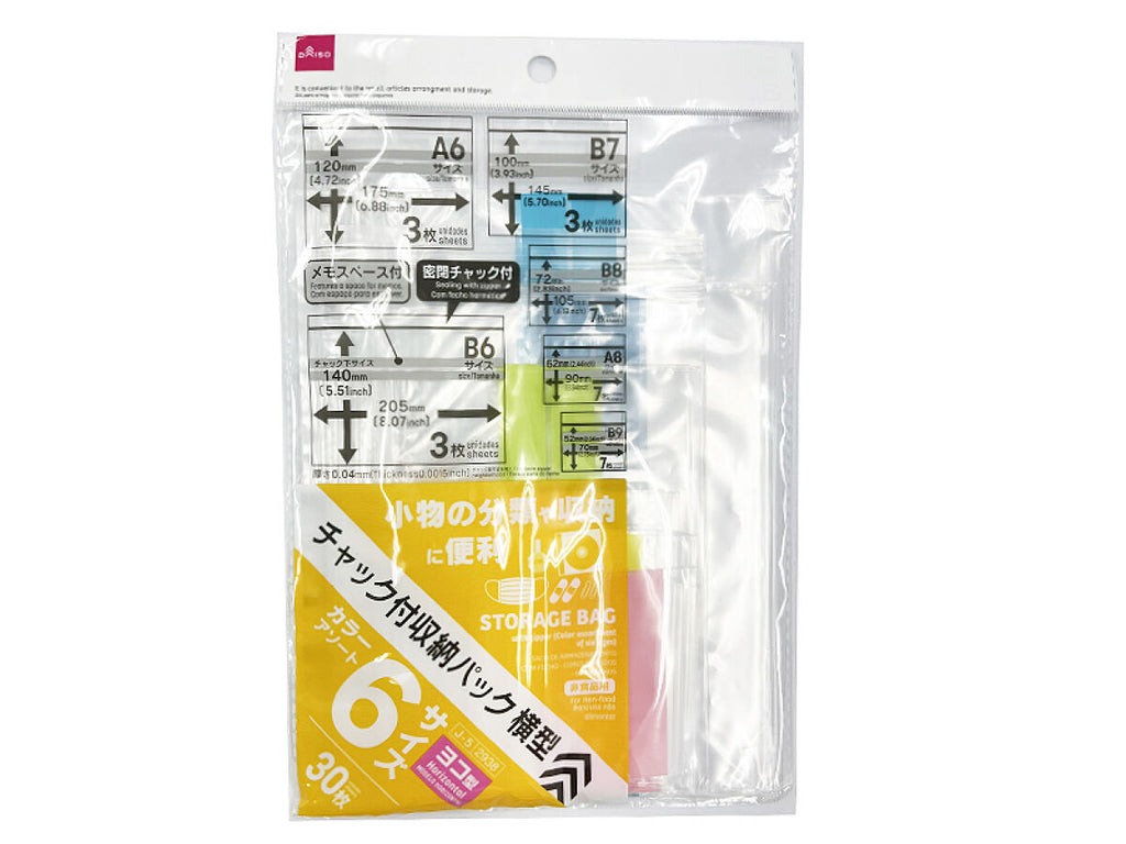 チャック付収納パック(カラーアソート6サイズ、横型)