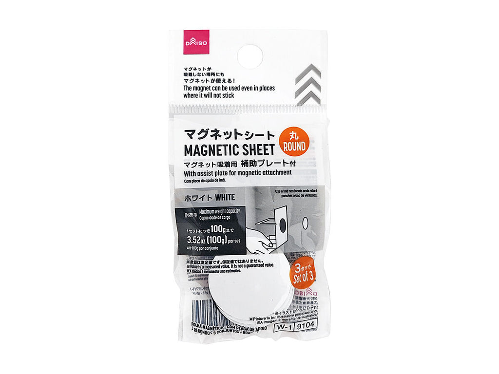 マグネットシート(補助プレート付、丸、3セット、ホワイト)