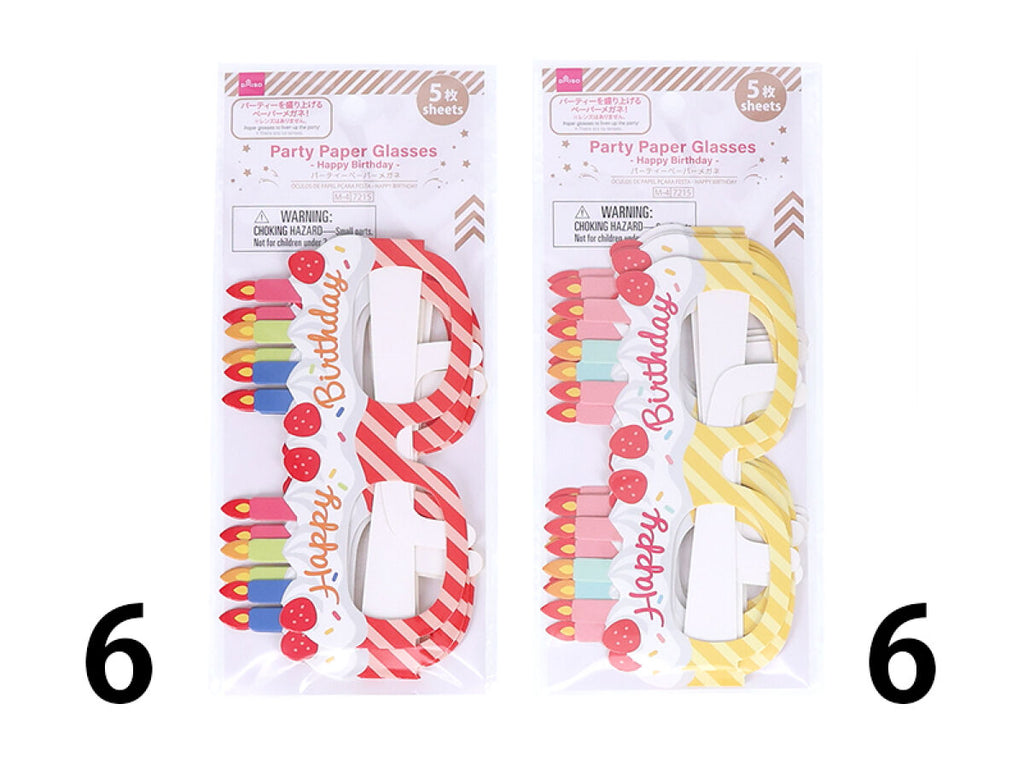 - 商品説明:●パーティーを盛り上げるペーパーメガネ!●このデザインの商品が5枚入っています。●レンズはありません-●5枚入り●サイズ:全長約39cm、テンプル約12cm、高さ約10cm---●本品はサングラスではありません。●玩具ではありません。●乳幼児の手の届かない場所で使用・保管してください。●長時間使用しないでください。●自転車、オートバイ、または自動車などを運転中には絶対に使用しないでください。運転中に使用すると、交通事故の原因になります。●破損した場合、直ちに使用を中止してください。●火や熱源のそばに置かないでください。●本来の用途以外に使用しないでください。