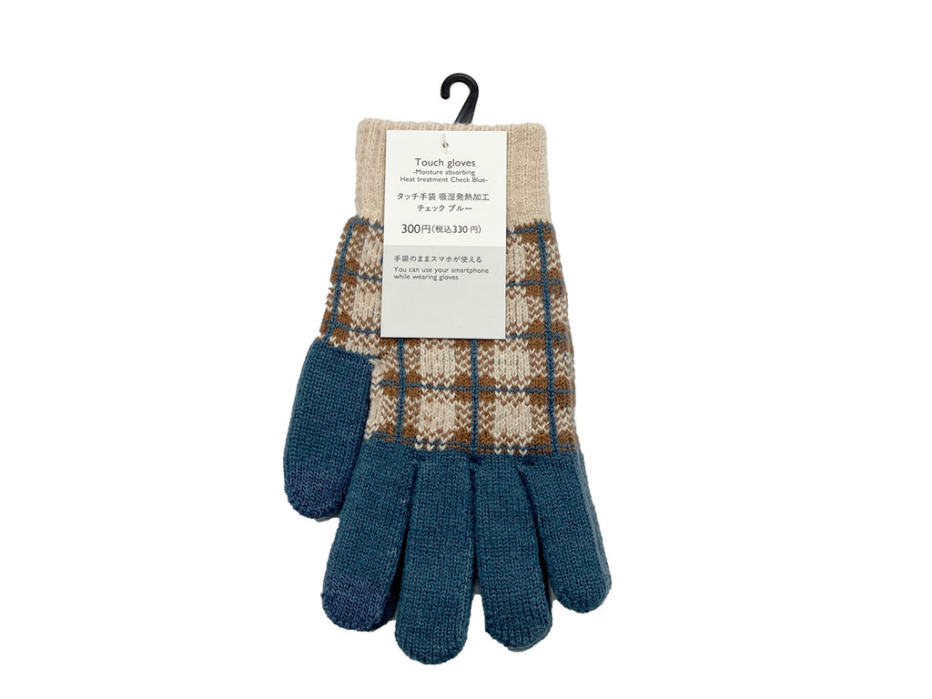 オリジナル商品:タッチ手袋_吸湿発熱加工_チェック_ブルー
