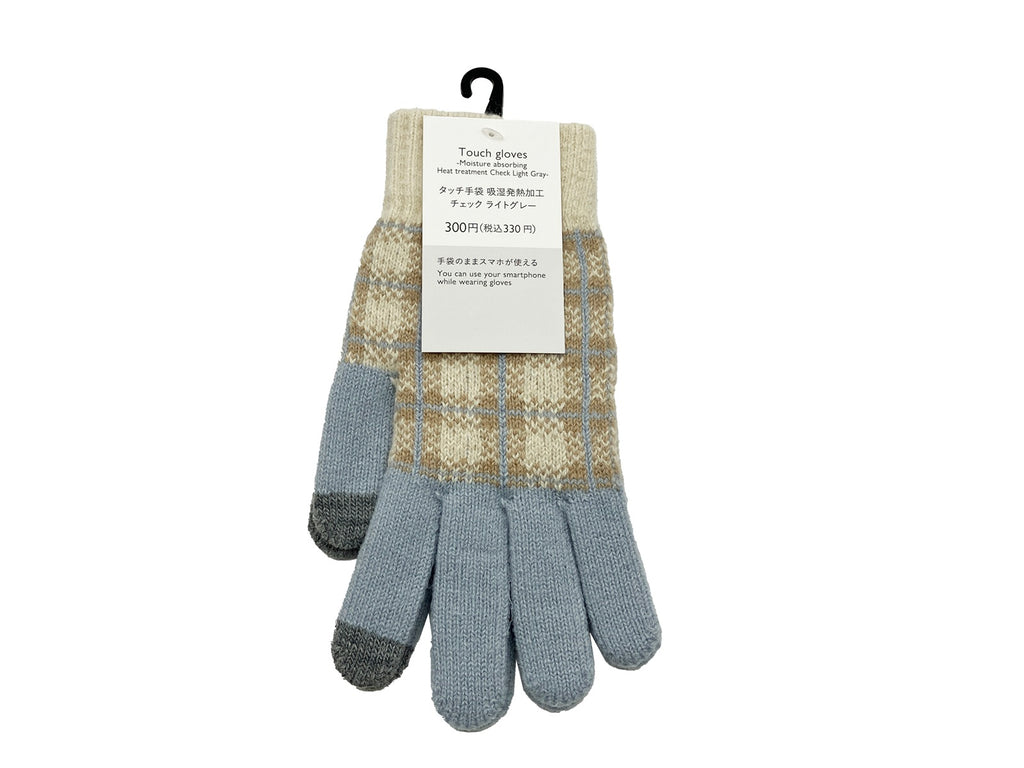 オリジナル商品:タッチ手袋_吸湿発熱加工_チェック_ライトグレー