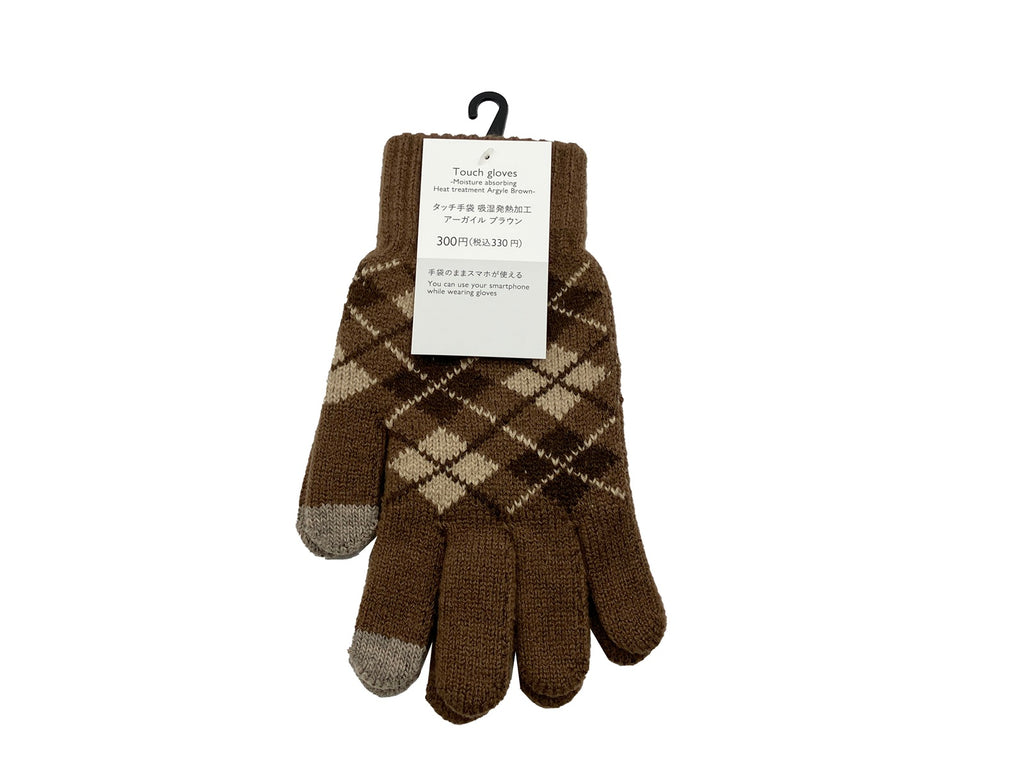 オリジナル商品:タッチ手袋_吸湿発熱加工_アーガイル_ブラウン