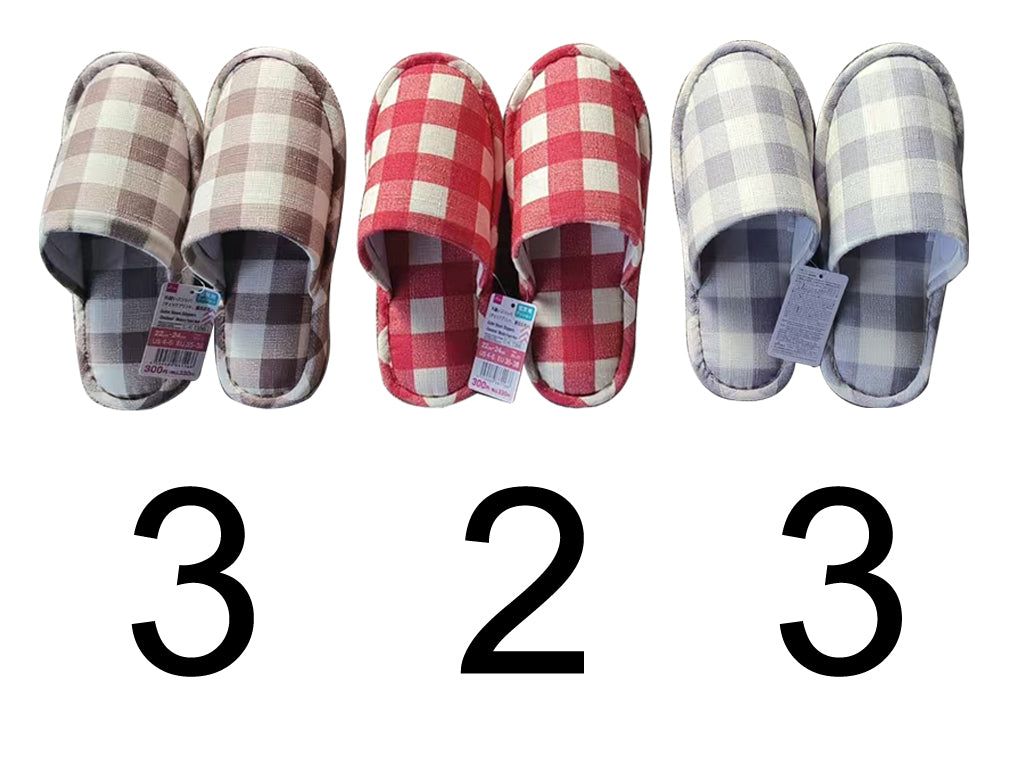 外縫いスリッパ(チェックプリント、踵低反発)22cm―24cm