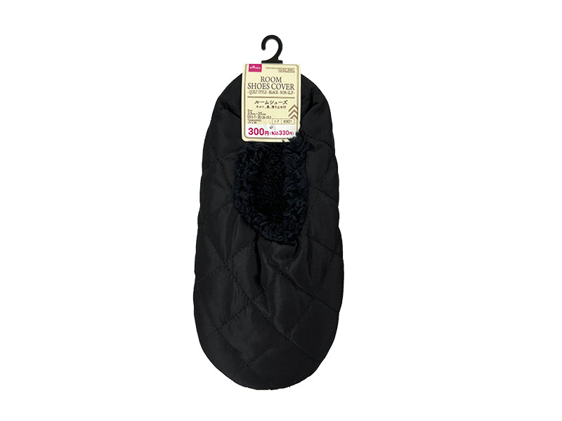 ルームシューズ(キルト、黒、滑り止め付)23cm-25cm
