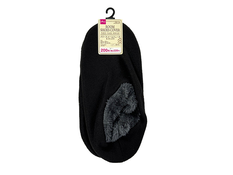 フリースルームシューズ(黒、滑り止め付)23cm-25cm