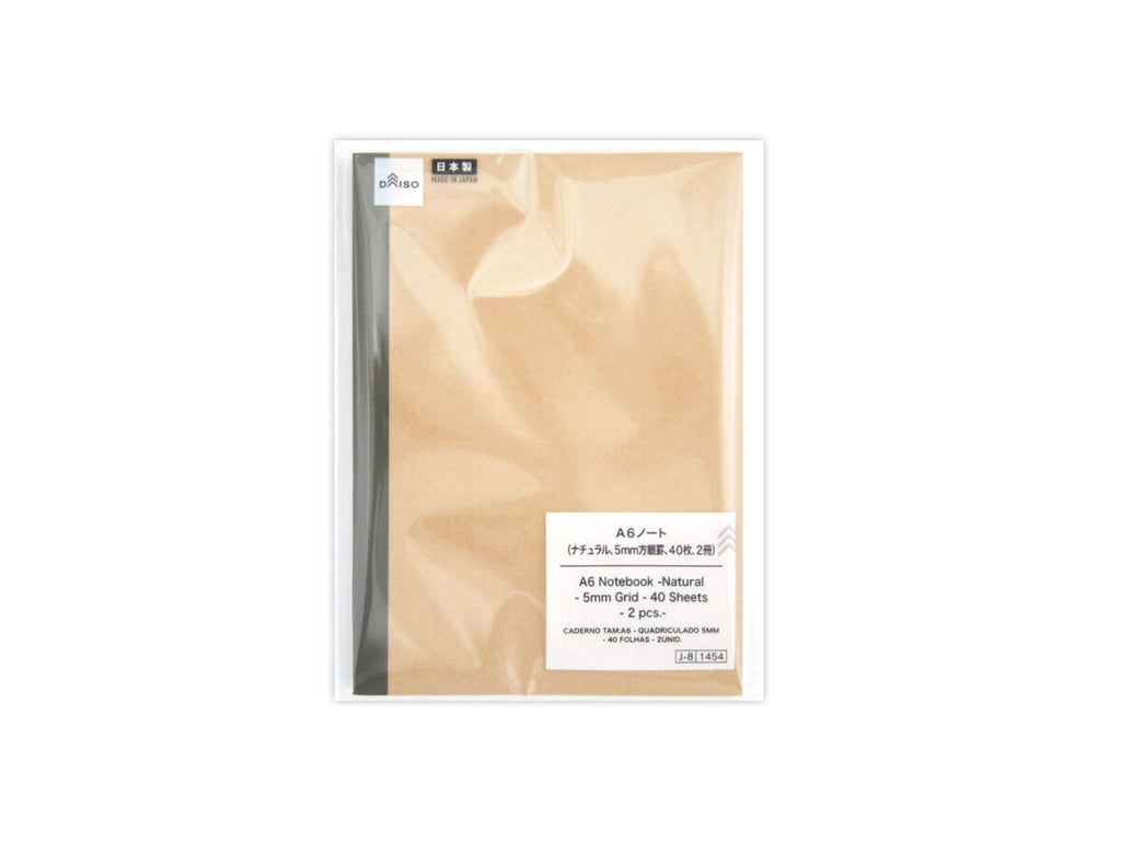 A6ノート(ナチュラル、5mm方眼罫、40枚、2冊)