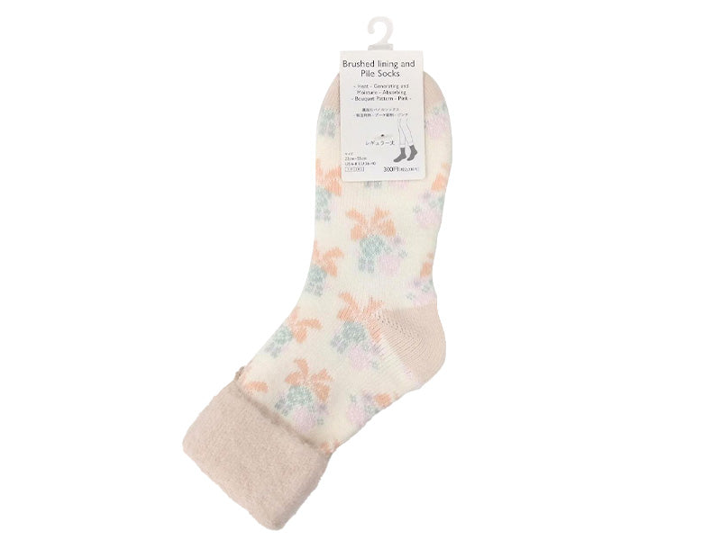 裏起毛パイルソックス(吸湿発熱、ブーケ総柄、PK)