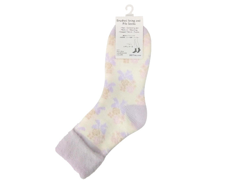 裏起毛パイルソックス(吸湿発熱、ブーケ総柄、PU)