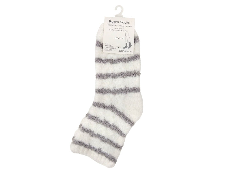 ルームソックス(ケーブル、ボーダー柄、WH)