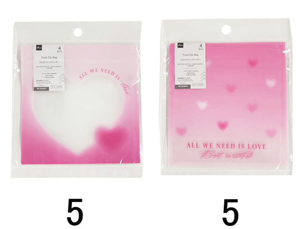 フロストジップバッグ(グラデーションハート、4枚)15cm×15cm