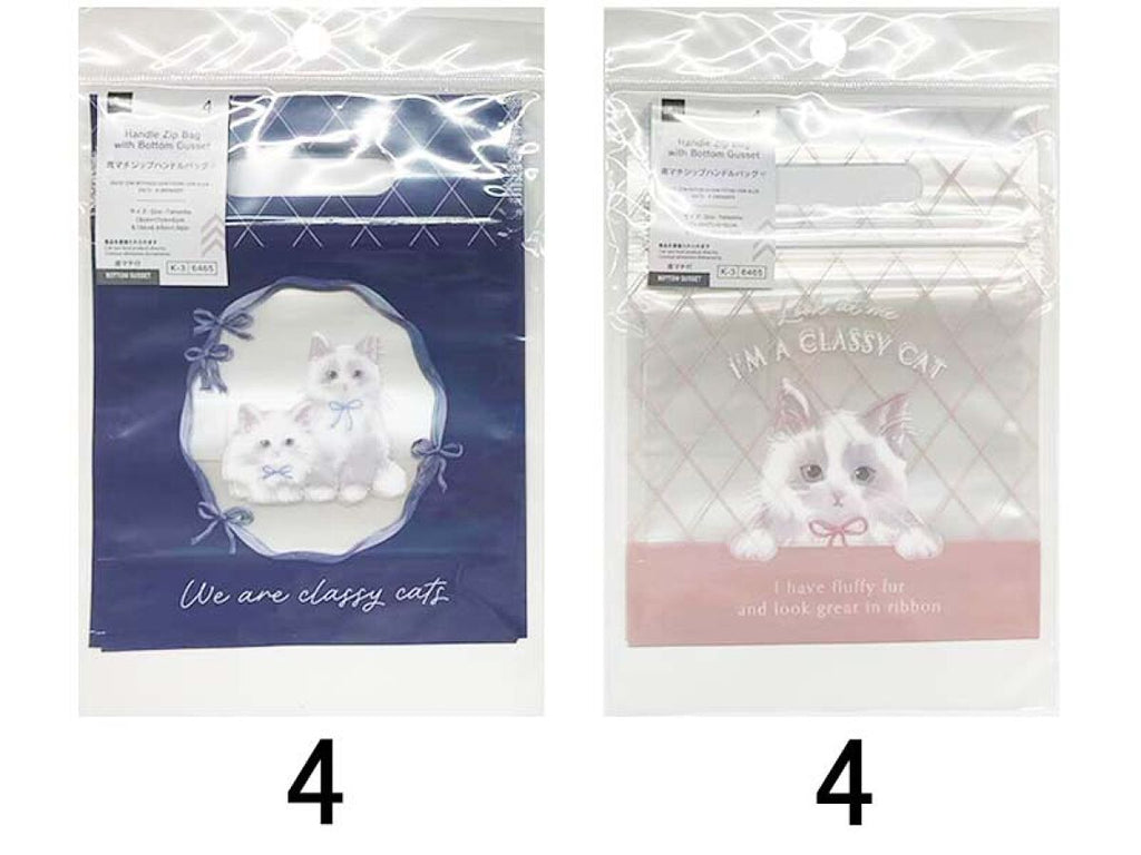 底マチジップハンドルバッグ(ねこ、4枚)13cm×17cm×5cm