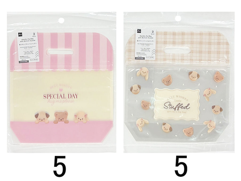底マチジップハンドルバッグ(ぬいぐるみ、3枚)20cm×21cm×7cm