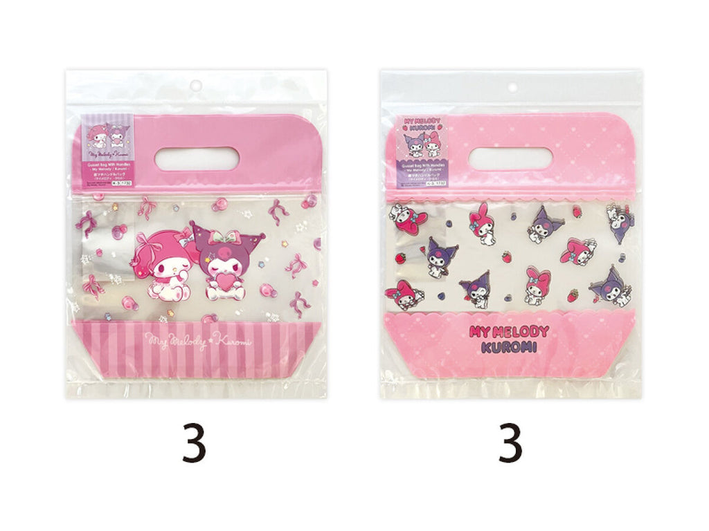 - 商品説明:底マチハンドルバッグ(マイメロディ・クロミ)食品を直接入れられます。底マチ付寸法:横200mm×縦210mm×底マチ70mm厚さ:0.05mm枚数:3枚耐冷温度:-10℃●子どもの手の届かない場所で使用・保管●尖ったもの・鋭利なものを入れない●重いものを入れたり詰め過ぎない●冷凍庫不可●火や熱源のそばに置かない●電子レンジ不可